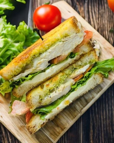 Grilled chicken, tomato, pesto, provolone, and lettuce, served on grilled Italian bread. A favorite of our very own 2019 Ivy League Rookie of the Year, Sienna Durr (vegetarian preparation upon request)