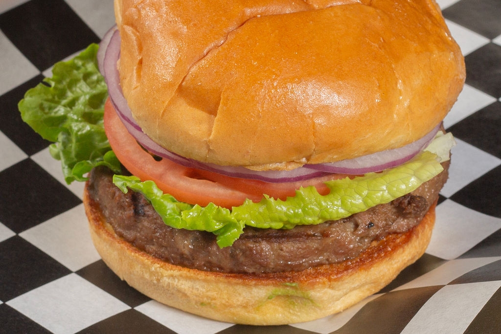 6 oz. Angus patty with lettuce, tomato, and onion, served on a brioche bun