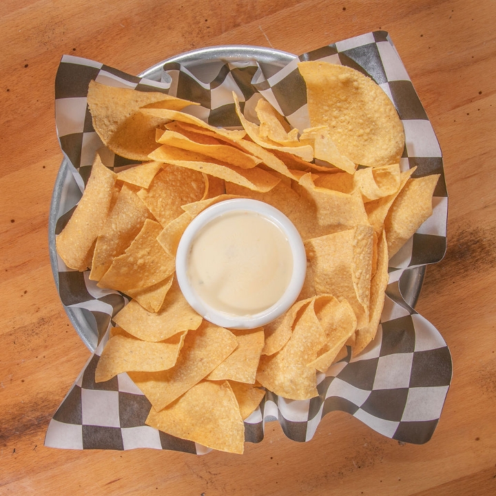 Queso blanco dip with a kick, served with our homemade tortilla chips