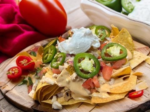 Layered nachos with queso cheese, cheddar cheese, pico de gallo and jalapeños with your choice of chicken or pulled pork. Add buffalo chicken for $3.00